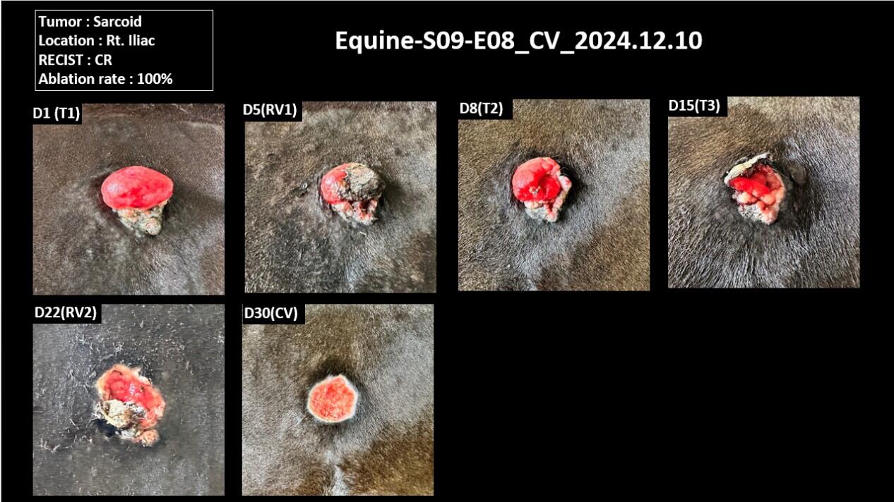 目前已治療 12 隻馬皮膚表淺腫瘤,包含黑色素瘤、肉瘤、鱗狀上皮細胞癌,其相關臨床結果於WEVA 2026 年會發表。